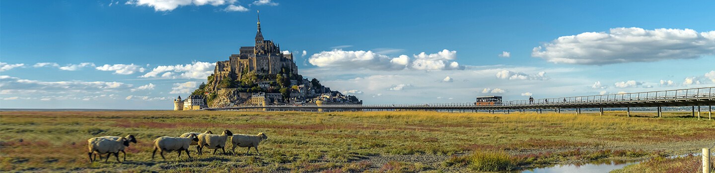 Eine Bucht, eine Insel und eine klösterliche Abtei tragen allesamt denselben Namen: Le Mont-Saint-Michel. Doch Haupt-Anziehungspunkt der Urlauber, die sich für einen Trip zu diesem magischen Ort in der Normandie entscheiden, ist sicherlich die imposante Anlage auf dem nur rund 55.000 Quadratmeter großen Eiland. Die Abtei Mont-Saint-Michel gehört seit 1979 zum UNESCO-Weltkulturerbe, zieht jährlich Millionen von Besuchern an und ist eine beliebte Wallfahrtsstätte für Pilger aus aller Welt. Seit 1998 gehört Mont-Saint-Michel sogar zum berühmten Jakobsweg, der auch durch Deutschland verläuft. Man sagt, wenn ein Urlaub in dieser Gegend der Normandie nicht mit dem Besuch von Mont-Saint-Michel verknüpft wird, ist das so, wie in Paris gewesen zu sein, ohne den Eiffelturm gesehen zu haben.