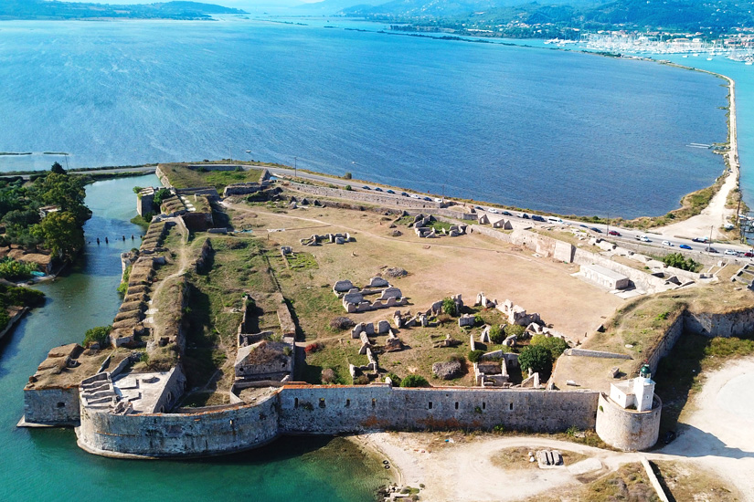 Heute sind vor allem noch Ruinen erhalten, die einen Eindruck von der majestätischen Größe des ursprünglichen Gebäudes vermitteln. Eine kleine Kapelle, die Lefkas’ Schutzpatronin Agia Mavra gewidmet ist, ist noch halbwegs erhalten. Von der Festung aus habt ihr einen tollen Blick auf das umliegende Meer und die schwimmende Brücke, die in regelmäßigen Abständen hochgeklappt wird, damit Schiffe passieren können.