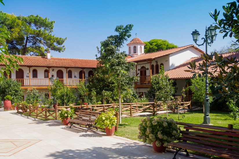 Im Süden der Insel, unweit des Kaps Doukato entfernt, liegt ein weiteres kleines Kloster, das mit seinen weißen Kalksteinmauern sehr traditionell erscheint und auf jeden Fall einen Besuch wert ist. In der Anfang des 17. Jahrhunderts gebauten Kirchenanlage wohnen heute noch Nonnen, die selbstgemachte Dinge wie verschiedene Handwerksgegenstände, Honig und Olivenöl verkaufen.