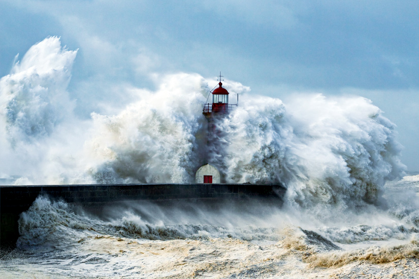 Der Leuchtturm Porto Felgueiras befindet sich an der Douro-Mündung, kurz bevor der Fluss in den Atlantik ausläuft. Hier werden die Wellen oft enorm. Das macht den Farolim de Felgueiras zu einem beliebten Touristenmagneten. Wer sich für ein Urlaubsfoto näher ans Wasser herantraut, muss damit rechnen, völlig durchnässt zu seiner Reisegruppe zurückzukehren. Die tollen Motive entschädigen jedoch schnell für das abenteuerliche Bad in der Gischt.
