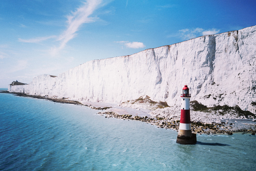Beachy Head ist eine Landzunge aus Kreide in East Sussex und nur 40 Fahrminuten von Brighton entfernt. Den besten Blick auf den rot-weiß-gestreiften Leuchtturm habt ihr vom Meer aus. Von hier seht ihr den Turm mit imposantem Panorama der Kreidefelsen im Hintergrund. Bereits im Jahr 1834 nahm ein Vorgänger, der Leuchtturm Belle Tout, seinen Betrieb auf den Klippen auf. Jedoch konnte sein Licht kaum durch den aufsteigenden Nebel an der Küste durchdringen und so entschied man sich für einen Neubau am Fuße der Felsen.