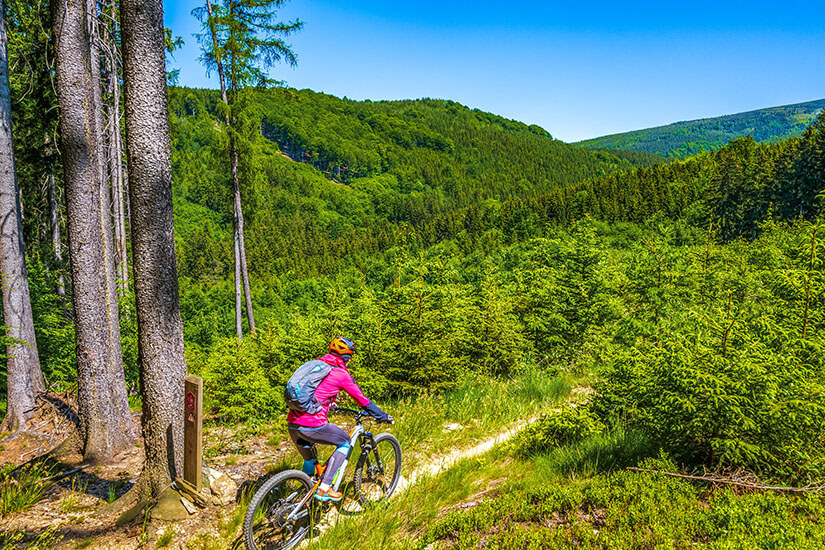 Wir empfehlen allen Sportbegeisterten, die Szenerie rund um Liberec auf dem Drahtesel zu erkunden. Nicht umsonst wird die Gegend des Jizerské hory (zu Deutsch Isergebirge) auch als „Böhmisches Paradies“ bezeichnet! Gerahmt von hohen Bergen und Felsen, gespickt mit Stopps wie alten Burgen und Schlössern und nicht zuletzt geprägt von gut ausgebauten Radwegen ist es ein pures Schlaraffenland für Mountainbiker.