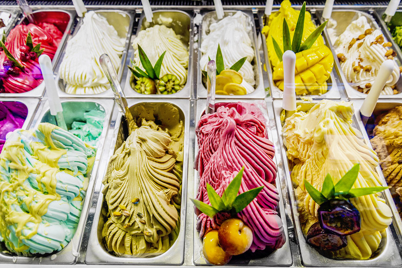 An der Adriaküste dominiert Fisch auf dem Tisch – ihr könnt reine Fisch- und Meeresfruchtgerichte (z.B. Fisch in Salzkruste) kosten oder italienische Klassiker wie Spaghetti und Pizza mit Muscheln garnieren. Natürlich gibt es auch vegetarische Alternativen wie die traditionelle Pizza Margherita oder eine dünne Variante mit Ricotta. Der Frischkäse sorgt hier für das gewisse Extra! Süße Sünden finden sich vor allem in Form von Eis, das euch fast an jeder Ecke verführen möchte. Vorsicht: Oft sind die Kugeln wirklich deutlich größer als in Deutschland!
