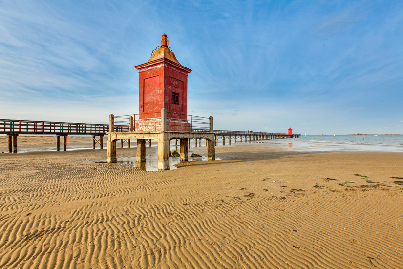 Wie Bibione und Lido di Jesolo kann auch Lignano Sabbiadoro mit einem auffälligen Leuchtturm auftrumpfen. Das rote Bauwerk wird euch im Osten der Stadt begegnen und kann gar nicht übersehen werden! Schlendert über den Holzsteg, der zu dem Leuchtturm führt, und freut euch von dort aus über die Aussicht quer über die Adriaküste. Wahrscheinlich werdet ihr auch auf einheimische Fischer treffen, die den Leuchtturm häufig aufsuchen.