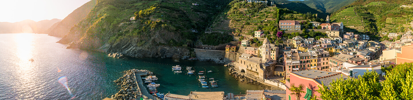 Ligurien ist die ideale Kulisse für einen typisch italienischen Urlaub zwischen Kultur und Küste. Einerseits könnt ihr in Genua traditionelles Sightseeing genießen, andererseits warten besondere Highlights wie die bunten Regionen der Cinque Terre. Zudem ist ein Aktivurlaub in Ligurien wunderbar vielseitig, beispielsweise könnt ihr euch beim Wassersport am Meer selbst herausfordern oder in den Grotten von Toirano auf Erkundungstour gehen.