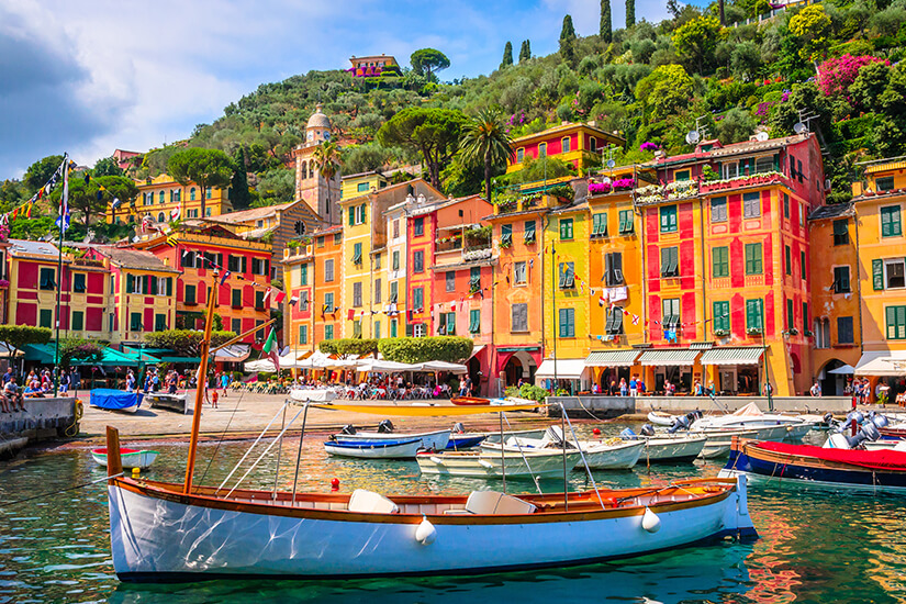 Portofino präsentiert sich idyllisch zwischen Meeresküste und Olivenhainen. Die farbenfrohen Häuser verleihen dem Ort, der vor allem bei den Reichen und Schönen beliebt ist, ein echtes “Postkartenaussehen”, das wunderbare Fotoerinnerungen für Zuhause ermöglicht. Doch zunächst geht es im Urlaub natürlich auf Erkundungstour durch enge Gassen bis hoch zur Burg, die sich weit über den Dächern des Ortes erhebt. Besucht die historischen Gotteshäuser wie die Kirche San Giorgio oder Sehenswürdigkeiten wie den Leuchtturm. In der Bucht von San Fruttuoso erwartet euch ein weiteres Highlight: die gleichnamige Abtei, die nur per Bootsausflug oder über einen Wanderweg erreichbar ist.