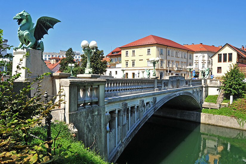 Der mediterrane Charme Ljubljanas wird nicht zuletzt durch sein markantes Brücken-Trio bestimmt. Eine Mitte des 19. Jahrhunderts entstandene Steinbrücke wird von zwei Fußgängerbrücken gesäumt. Die Drei Brücken ersetzen eine frühere Holzkonstruktion.