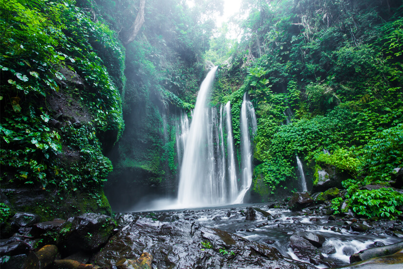 Immer wieder werdet ihr auf Lombok den idyllischen, plätschernden Wasserfällen des grünen Dschungels begegnen. Besonders schöne Exemplare finden sich in der Nähe von Senaru. Bei manchen Wasserfällen ist es sogar möglich, einen Sprung ins Nass zu wagen. Ihr solltet dies aber nur nach Rücksprache mit einem Guide tun! Wenn euch der Sprung zu waghalsig ist, wartet bei den Wasserfällen immerhin eine Dusche – wundervoll bei den tropischen Temperaturen.