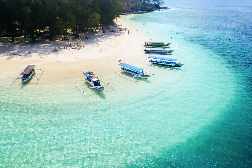 Nicht nur Lombok selbst ist im Vergleich zu Bali ein Geheimtipp – noch idyllischer und abgelegener wird es, wenn ihr das Ausflugsziel der Gili-Inseln im Urlaub einplant. Diese Inselgruppe liegt vor der Westküste von Lombok. Besonders bekannt sind die drei Inseln Gili Trawangan, Gili Air und Gili Meno. Doch auch die weniger bekannten der Gili-Inseln sind lohnenswerte Ausflugsziele. Was ihr hier vor allem erleben könnt? Herrliche Schnorcheltouren im glasklaren Wasser und entspannte Spaziergänge – denn auf den Gili-Inseln gibt es keine Fahrzeuge mit Motor. Innerhalb von knapp einer halben Stunde seid ihr von Senggigi aus rasch auf den Gili-Inseln. Euer Reisemittel ist dabei ein Speedboat, das mehrmals täglich abfährt und euch die Gelegenheit für einen Urlaub im Urlaub gibt.