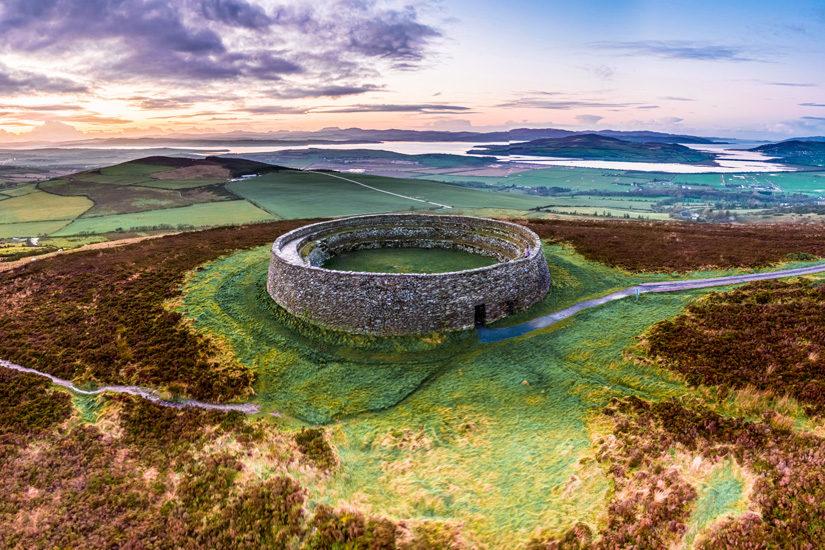 Doch auch bedeutende kulturelle Erzeugnisse liegen in der Umgebung von Londonderry, wie etwa ein Nationaldenkmal des Landes. Circa zehn Kilometer westlich der Stadt liegt in der Republik Irland ein kreisrundes Steinfort mit dem Namen Grianán von Aileach. Hier spielte sich in den Jahren 800 bis 1.200 vor Christus ein großer Teil des Kultur- und Politikgeschehens ab, auch die Könige von Aileach residierten hier. Das Ringfort wurde mittlerweile restauriert und ist daher gut zu besuchen. Die Hauptwälle haben einen Durchmesser von 23 Metern und bieten einen großartigen Ausblick auf die weite Landschaft der Umgebung.