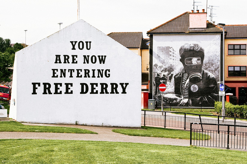 Durch die tragischen Ereignisse des Bloody Sunday entstand noch eine weitere Sehenswürdigkeit Derrys. Im Jahr 1993 gründete sich das Künstlerkollektiv Bogside Artists. Sie begannen großflächige Wandbilder an die Häuserfassaden von Londonderry zu sprühen, welche sich stets mit dem Bloody Sunday und weiteren politischen Themen auseinandersetzen. Über zwölf beeindruckende und künstlerische Zeitzeugnisse könnt ihr euch somit kostenfrei bei einem entspannten Spaziergang ansehen. Um hier kein Bild zu verpassen und die nötigen Hintergrundinformationen zu bekommen, bucht euch am besten eine Führung. In den Sommermonaten werden diese von einem der Bogside Artists selbst abgehalten.