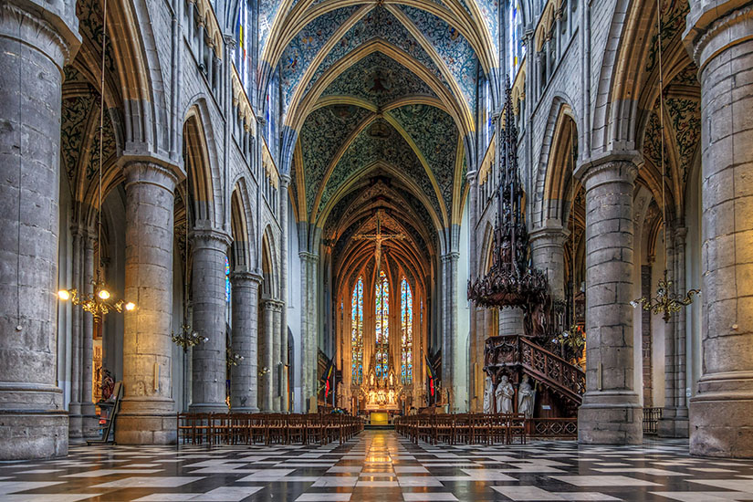 Eine magische Atmosphäre herrscht in dieser gigantischen Kathedrale, deren Bau im Jahr 1230 begann. Sie wurde mehrmals verändert, bis im 19. Jahrhundert ein neuer Turm hinzugefügt wurde. Dieser erinnert an den Turm der früheren Kathedrale Saint Lambert. Besonders der Innenraum des sakralen Gebäudes bezaubert die Besucher der Kirche. Ihr solltet bei eurem Besuch unbedingt auch einen Blick in die Schatzkammer werfen, in der die Geschichte und die Kunst des früheren Bistums Lüttich präsentiert werden. Dort gibt es außergewöhnliche Stücke aus dem Mittelalter wie den Reliquienschrein von Charles le Téméraire. Eindrucksvoll sind auch die wertvollen Stoffe, unter denen sich das Schweißtuch von Saint Lambert und liturgische Gewänder befinden. Abgerundet wird der prächtige Anblick mit schmuckvollen Elfenbeinskulpturen. Besonders empfehlenswert bei einem Besuch ist eine fachkundige Führung, die in Form von Audioguides auch in Deutsch und Englisch angehört werden kann.