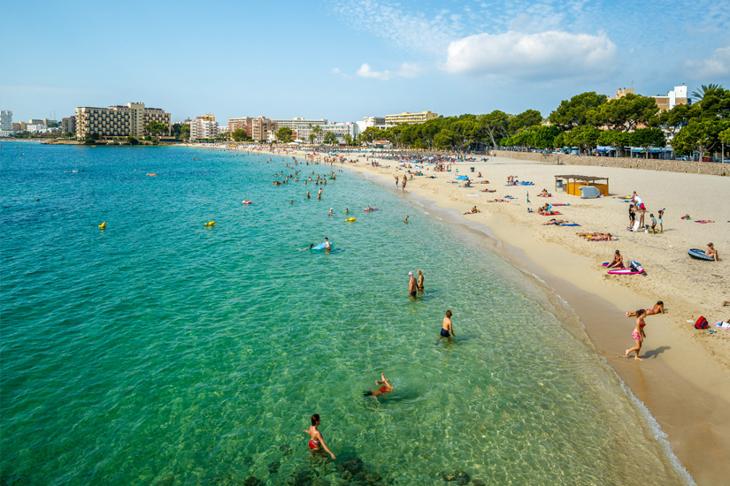 Der Hausstrand von Magaluf begrüßt euch mit weißem Sand auf einer Länge von fast einem Kilometer. Logisch, dass ihr hier einen Ort für euer Sonnenbad oder das fröhliche Plantschen im Meer finden werdet. Dennoch müsst ihr mit zahlreichen Beach Clubs und Livemusik rechnen, denn es handelt sich um eine absolute Feierkulisse. Der flache Verlauf, der feinkörnige Sand und das ruhige Wasser bilden aber trotz der vorwiegenden Ausrichtung zum Feiern ein tolles Szenario für einen Strandtag mit der ganzen Familie. Ihr nächtigt in Palma de Mallorca und sehnt euch nach einem anderen Strand? Hier habt ihr ihn gefunden! Nur rund 20 Autominuten trennen euch von der Playa de Magaluf.