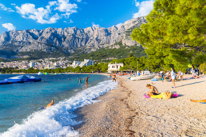 Ein insbesondere für Familien geeigneter Strand liegt ein wenig außerhalb von Makarska, nämlich im Ort Zivogosce südlich der Stadt. Der Strand fällt hier flach ins Wasser ab und ist weitläufig genug, damit die Kinder herumtoben können. Eine kleine Strandbar versorgt euch mit Getränken.