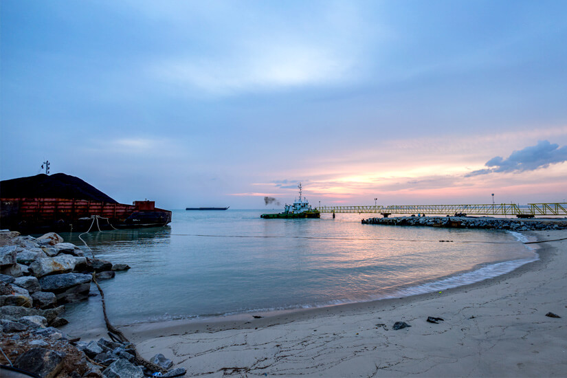 Besonders schön ist hier der Sonnenuntergang, da ihr direkt nach Westen schaut. Am Horizont sind weitere Inseln zu sehen, die sich von den Rottönen der untergehenden Sonne abheben. Auch tagsüber gibt es viel zu sehen, denn dank des klaren Wassers ist der Coral Beach einer der besten Tauch- und Schnorchelspots von Malaysia. Selbst ohne Ausrüstung könnt ihr die bunten Fische und exotischen Algen im Wasser beobachten. Am nördlichen Ende des Coral Beach, der nur etwa 500 Meter lang ist, könnt ihr übrigens einen schönen chinesischen Tempel anschauen.