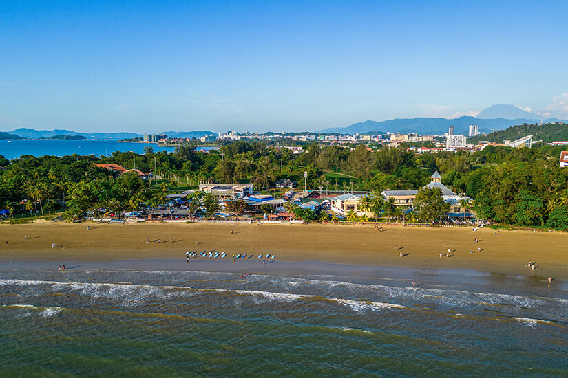 Zu den beliebten Aktivitäten am Tanjung Aru Beach gehören Drachensteigen, Picknicks, Wassersport und Essen. Viele kleine Stände verkaufen vor allem zum Sonnenuntergang leckere Speisen. Außerdem gibt es ein Spa, einen Golf- und Yachtclub, sodass ihr unterschiedliche Tätigkeiten beobachten oder buchen könnt. Sehenswert sind zudem die Sabah State Library und der Perdana Park – beide befinden sich ganz in der Nähe des Strandes.