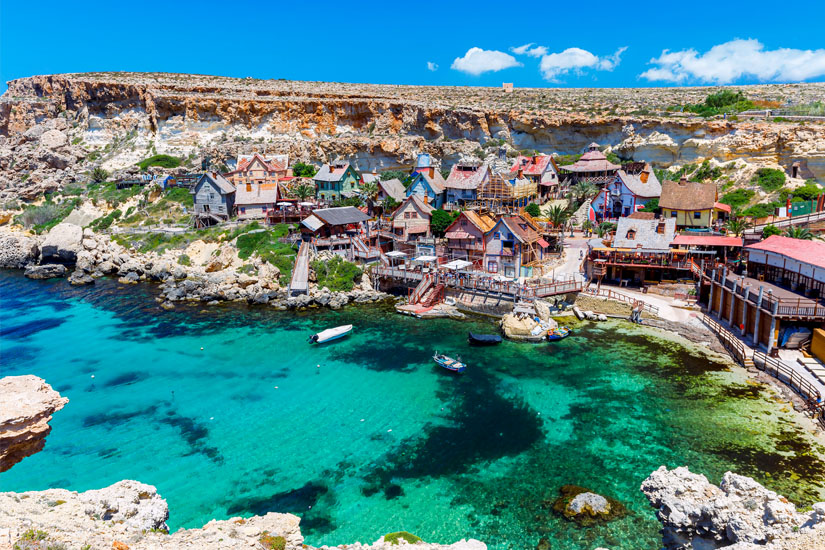 Ein absolutes Highlight, besonders wenn ihr mit Kindern anreist, ist das „Popeye Village“. Die Filmkulisse des 1980 gedrehten Musicals „Popeye“ ist heute ein ganzjährig geöffneter Freizeitpark für Jung und Alt und eine der wichtigsten Attraktionen Maltas. Die Kulissenstadt befindet sich in Anchor Bay nahe Mellieha im Norden der Insel und besteht aus unzähligen kleinen Holzhütten.