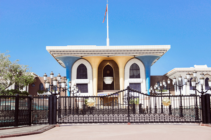 Anfang der 1970er Jahre hat Sultan Qabus den Bau des Palasts in Auftrag gegeben. Der Palast ist leider nicht für Besucher zugänglich, doch ist er aufgrund der farbigen Fassade und der feinen Mosaiken ein beliebtes Fotomotiv.