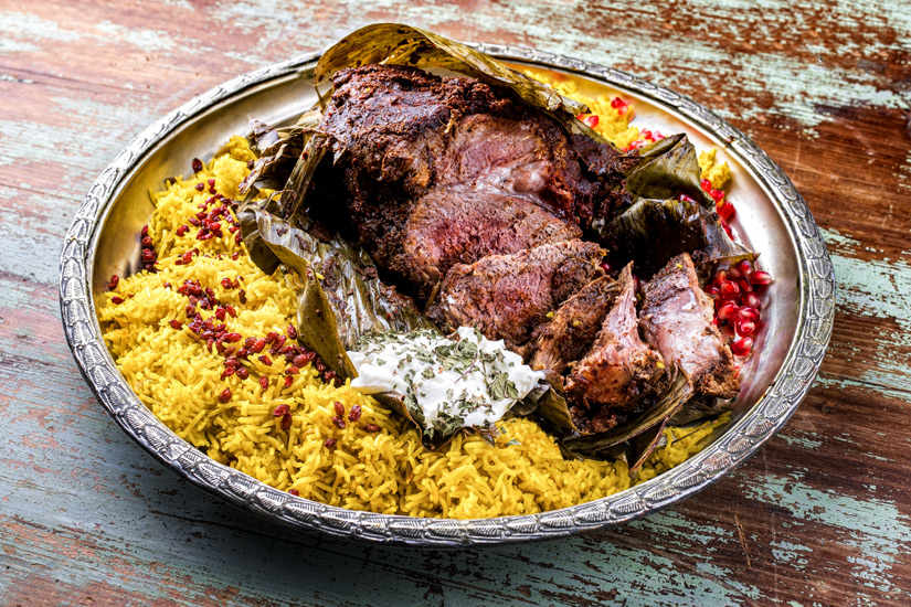 In Maskat isst man gern die typisch arabischen Gerichte wie Falafel, Baba Ganoush oder das allgegenwärtige Hummus – natürlich stets mit Fladenbrot serviert. Eine omanische Spezialität ist Shuwa. Dabei wird ein Lamm in Bananenblätter gewickelt und zwei Tage lang in einer Erdgrube gegart.