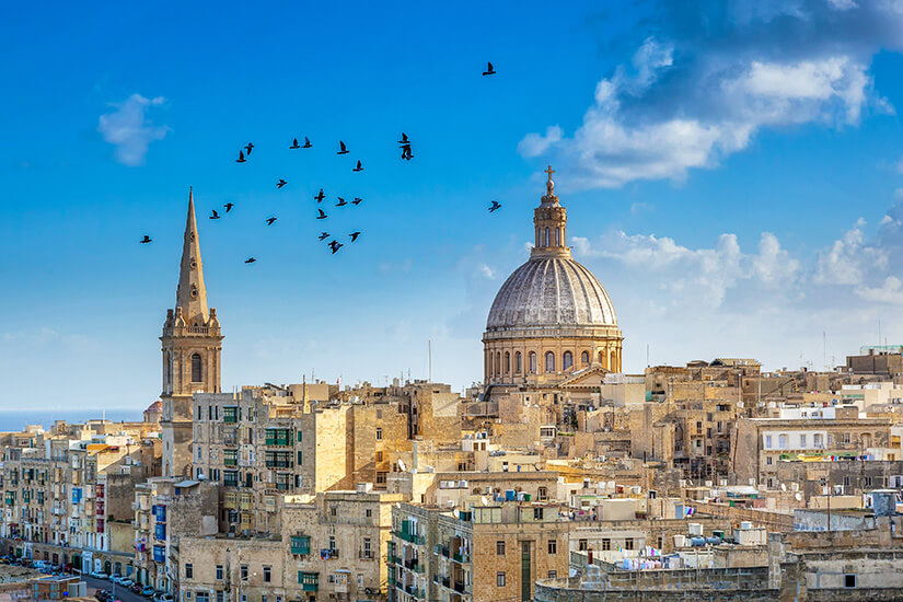 Valletta, die Hauptstadt von Malta, ist mit dem Auto nur 30 Minuten von Mdina und Rabat entfernt. Mit etwa 5.800 Einwohnern ist die Stadt klein, aber dafür umso sehenswerter. Auch hier erhaltet ihr schnell einen Eindruck davon, wie umkämpft Malta früher war, denn die Altstadt ist komplett von einer Mauer umgeben. Im 16. Jahrhundert wurde Valletta auf einer Halbinsel vom Johanniterorden erbaut. Museen, Paläste und große Kirchen wie die Johannes-Kathedrale mit einem Caravaggio-Kunstwerk sind besonders sehenswert.