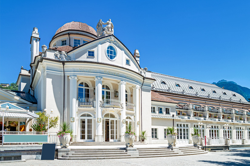 Das im Jugendstil gehaltene Kurhaus von Meran stammt aus dem späten 19. Jahrhundert und verfügte zu früheren Zeiten über eine Badeanstalt und diverse Veranstaltungssäle. Berühmte Besucher sollen Franz Kafka und Christian Morgenstern gewesen sein.
