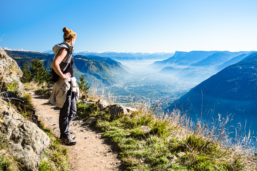Wanderungen in der Nähe von Meran sind immer lohnend. Das Gute: Ihr seid mitten im Geschehen und könnt den Schwierigkeitsgrad selbst bestimmen. Sogar die Stadt selbst hat Potenziale für eine leichte Wanderung, etwa über den Sissi-Weg, den Tappeinerweg oder die Gilfpromenade, von denen ihr schon gehört habt. Deutlich anspruchsvoller wird es im hügeligen Umland. Wer sich traut, kann die rund 43 Kilometer von Meran nach Bozen wandern. Es handelt sich um einen Zwei-Etappen-Ausflug für erfahrene Outdoor-Fans, aber auch Klettertouren sind in der Berglandschaft kein Problem.