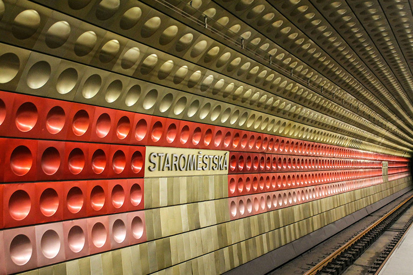 Prag gehört zu den Städten, die schon früh in der Geschichte über eine U-Bahnlinie nachdachten. Tatsächlich umgesetzt wurde der Plan jedoch erst in den 1970er Jahren. Heute gibt es drei Linien: A, B und C. Die Prager U-Bahn-Station Staroměstská ist Teil der Linie A in der tschechischen Hauptstadt und befindet sich direkt unter der Altstadt. Die Linie A trägt außerdem den Beinamen der schönsten U-Bahnlinie der Stadt, da viele Stationen zu Kunstwerken wurden. Staroměstská und auch die anderen Metrostationen Prags erinnern durch ihre farbliche Gestaltung an wichtige Ereignisse der Geschichte. Die roten Farbelemente in Staroměstská stehen beispielsweise unter anderem für den Prager Fenstersturz.