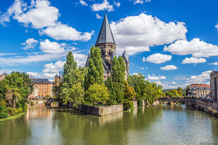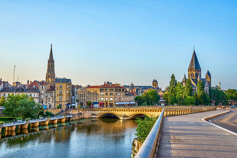 Nahe der Grenze zu Deutschland und Luxemburg liegt Metz. Diese historische Perle vereint französisches Savoir-vivre mit einem Hauch deutscher Vergangenheit. Sie liegt am Zusammenfluss von Mosel und Seille und überrascht mit außergewöhnlicher Architektur, ihrer pulsierenden Kunstszene und einem besonders grünen Stadtbild.