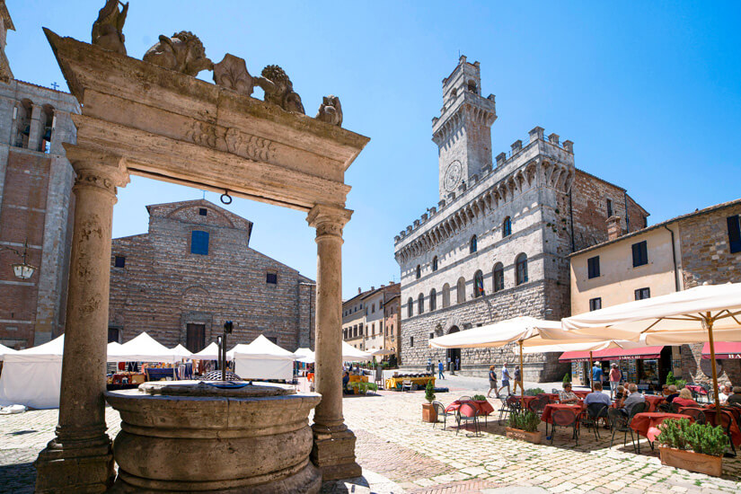 Ein Blickfang an der Piazza Grande ist dieser hübsche Greif- und Löwenbrunnen. Er wurde von dem Architekten Antonio da Sangallo entworfen und im Jahr 1520 errichtet. Mit seinem mittelalterlichen Erscheinungsbild ist er ein tolles Motiv für Urlaubsfotos. Hervorzuheben sind die beiden Säulen, die aus der Etruskerzeit stammen. Am Brunnenbalken erkennt ihr zwei Löwen und das Medici-Wappen. Wenn ihr das Ambiente eine Weile auf euch wirken lassen möchtet, könnt ihr euch ein Plätzchen in der nahegelegenen Bar suchen.