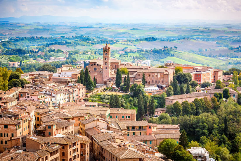 Von Montepulciano seid ihr schnell in der 64 Kilometer entfernten Stadt Siena. Auf der Fahrt kommt ihr an Weinbergen und Olivenhainen vorbei – Toskana pur. Schlendert durch die urige Altstadt, die zum UNESCO-Weltkulturerbe gehört! Anschließend schaut ihr euch das Rathaus Palazzo Publico und den beeindruckenden Turm Torre del Mangia an. In den liebevoll gestalteten Geschäften geht ihr nach Herzenslust shoppen, bevor ihr auf der Piazza del Campo in ein Restaurant einkehrt und euch eine Pause gönnt.