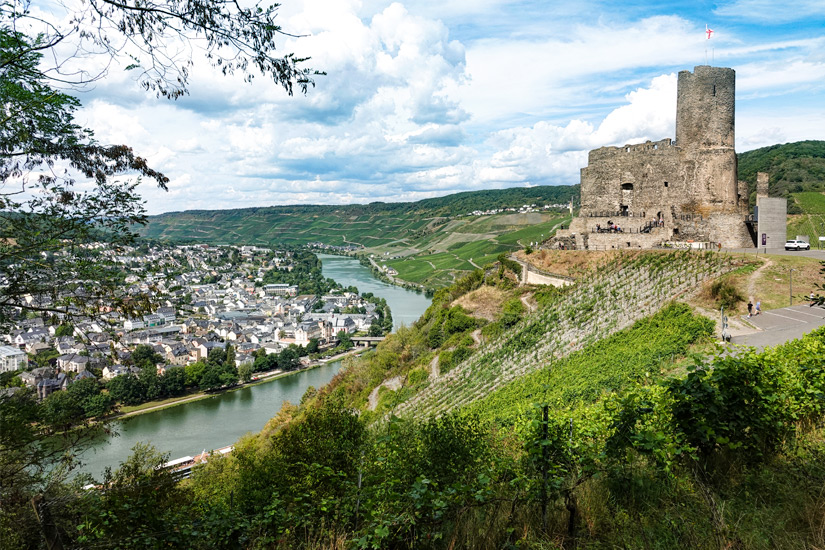 Das Moseltal ist bekannt für die zahlreichen Burgen und Schlösser, die inmitten grüner Hügellandschaften durch die Baumwipfel blitzen. So solltet ihr während eures Aufenthaltes an der Mosel unbedingt eine Burgruine besichtigen: zum Beispiel die Burg Landshut. Sie zählt zu den ältesten Burgen im gesamten Moseltal und liegt auf dem 235 Meter hohen Burgberg. Ob ihr den schönen Aufstieg auf euch nehmt oder mit dem Auto nach oben fahrt, bleibt ganz euch überlassen.