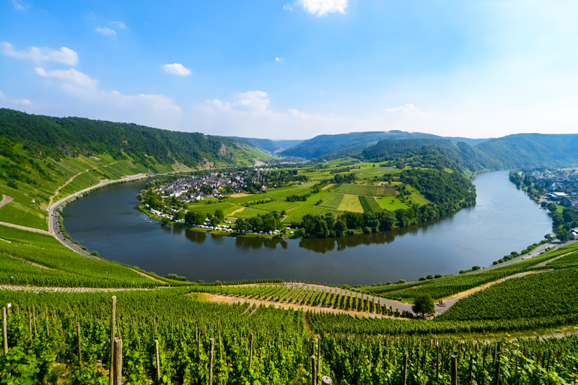 Die Mosel entspringt in den Vogesen von Frankreich und bahnt sich ihren Weg durch Luxemburg, bis sie schließlich bei Koblenz am Deutschen Eck in den Rhein mündet. Dabei legt sie eine Strecke von 544 Kilometer zurück und durchquert drei Länder, wobei sie eine natürliche Grenze zwischen Deutschland und Luxemburg bildet. Dem Moseltal wird der Abschnitt des Flusses zugerechnet, der zwischen Konz und Müden liegt. Die Mosel bietet auf ihrem Weg vielfältige Möglichkeiten für Beobachtungstouren und sonstige Freizeitgestaltung. So sind es vor allem die idyllischen Weinberge, für die das Moseltal als Top-Weinanbaugebiet auf der ganzen Welt bekannt ist. Begünstigt durch das milde Klima des Tals galt diese Region schon bei den alten Römern als besonders beliebt für den großflächigen Anbau und die Produktion von Wein.