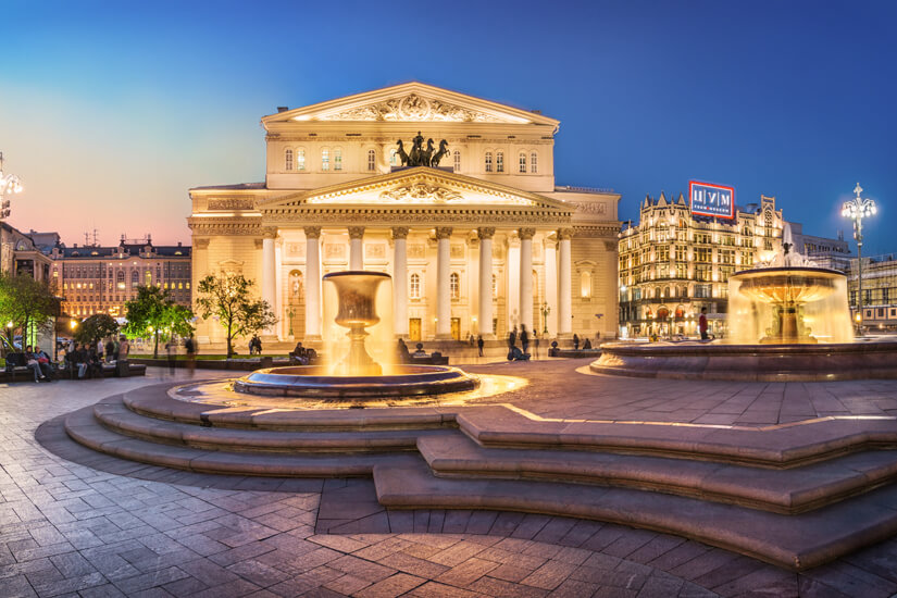 Die Architektur des Gebäudes ist ein wahrer Blickfang: ein klassizistischer Baustil mit weißen Säulen sowie wundervollen Sälen, die mit rotem Samt und goldenen Details verziert sind. Zieht euch also etwas Schickes an und reserviert euch rechtzeitig die Tickets, denn diese sind immer sehr schnell ausverkauft. Keine Tickets mehr ergattert? Im Bolschoi-Theater werden auch regelmäßige Führungen durch das Gebäude angeboten, die euch wenigstens einen kleinen Einblick in das Theater geben.
