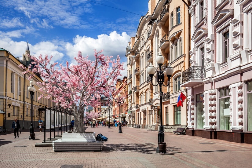 Einst gehörte dieses Viertel zu einem der tristesten Bezirke Moskaus, denn sozialistische Arbeiterfamilien lebten hier auf engsten Räumen in mehrstöckigen Reihenhäusern. Heute ist das Arbat Viertel das komplette Gegenteil! Die Gebäude sind renoviert und wenn ihr durch die Straßen schlendert, findet ihr hippe Cafés, trendige Boutiquen und stilvolle Kunstgalerien.