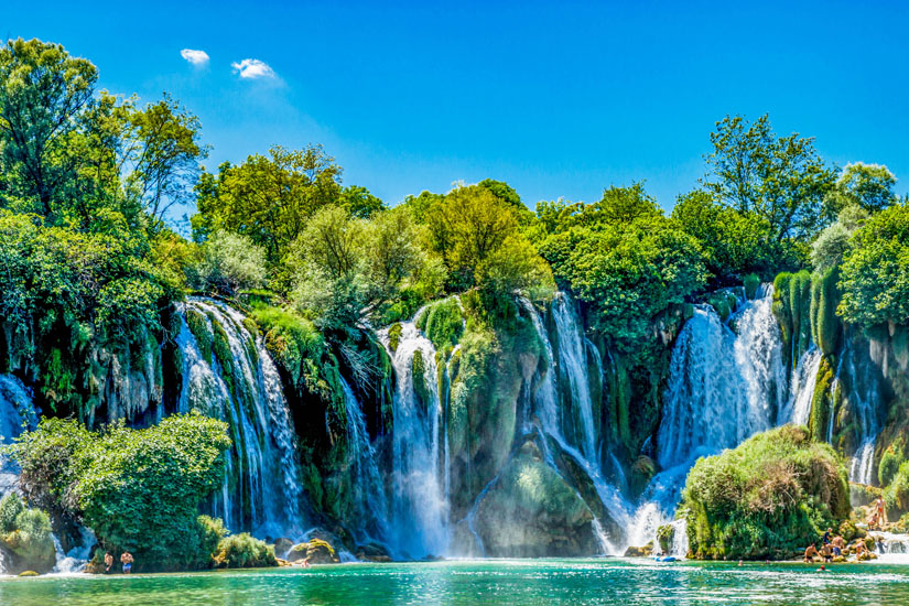 Wenn ihr etwas Zeit übrighabt und einen kleinen Ausflug machen möchtet, dann empfehlen wir euch die Kravice Wasserfälle. Diese befinden sich 40 Kilometer südwestlich von Mostar. Hier fließt der Fluss Trebižat an mehreren Stellen bis zu 30 Meter in Wasserfällen hinab. Im Sommer lässt es sich hier wunderbar schwimmen und ein naheliegendes Restaurant sorgt für Stärkung.