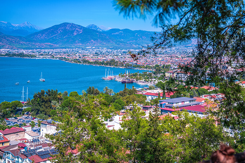 Marmaris ist eine kleine Hafenstadt, die umgeben von bewaldeten Bergen an einer geschützten Bucht liegt. Besonders hervorzuheben ist die Wasserqualität der Strände, die oft mit der Blauen Flagge ausgezeichnet sind – kein Wunder, dass die Strände hier mit zu den schönsten der ganzen Türkei zählen. In einem der größten Jachthäfen der Region werden noch die traditionellen Holzsegler, die sogenannten Gulets, hergestellt. Ihr könnt auf einen der Boote Ausflüge unternehmen, ob in eine einsame Bucht oder ins gerade mal 18 Kilometer entfernte Rhodos, bleibt ganz euch überlassen.
