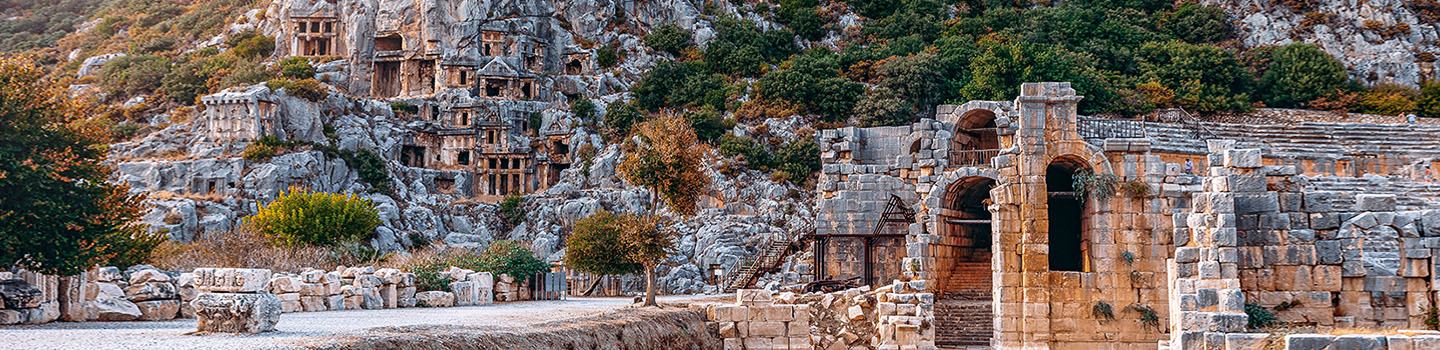 Vor Jahrtausenden lebte das Volk der Lykier hier, heute trägt die einstige Stadt Myra den Namen Demre und gehört zu einem der vielen Highlights an der Türkischen Riviera. Welche Geheimnisse in den antiken Felsengräbern auf dem Festland und im Meer vor der Küste auf euch warten, entdeckt ihr bei eurer Reise nach Myra!