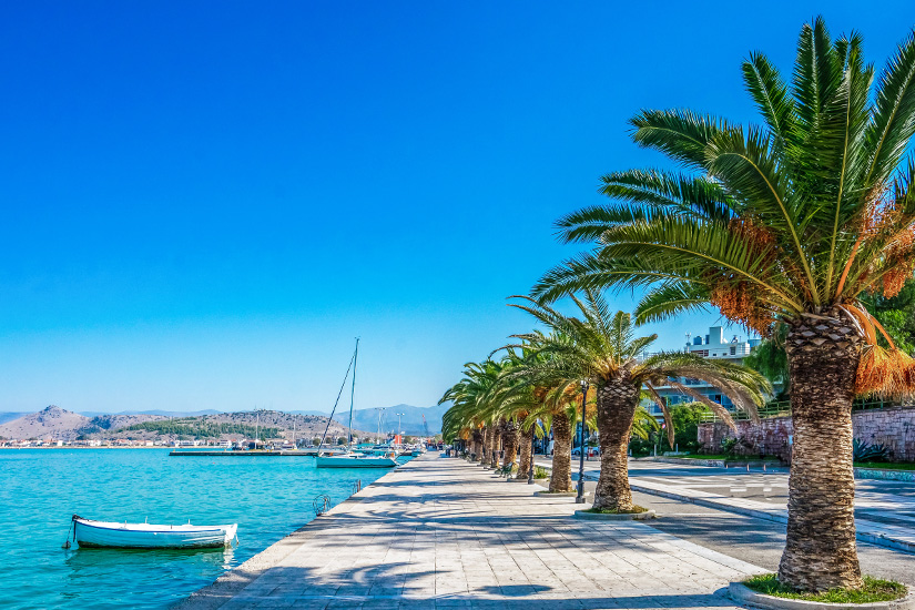 Um die Aussicht auf den Argolischen Golf zu genießen, lohnt sich ein gemütlicher Spaziergang entlang der Promenade. Der Weg der Landzunge lässt euch das Glitzern des Meeres und das gesamte Landschaftspanorama aus verschiedenen Winkeln betrachten und bewundern. Tipp: Wenn ihr dem Verlauf der Küste bei Sonnenaufgang oder Sonnenuntergang folgt, bietet sich euch ein Spektakel, das besonders für Paare ein romantisches Highlight ist.