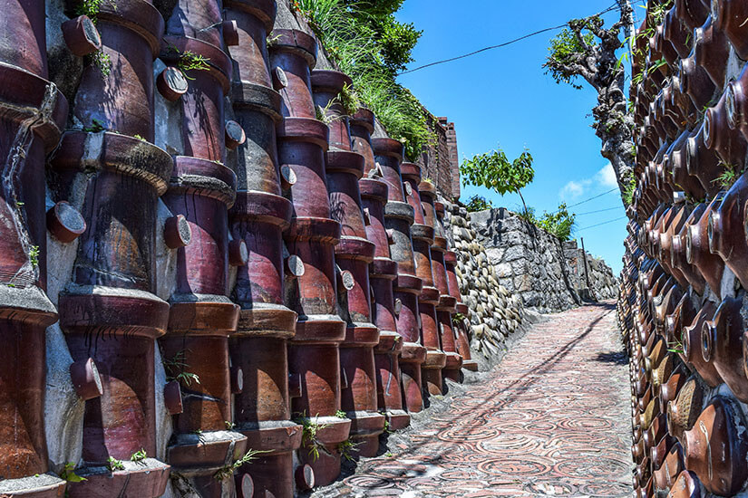 In Tokoname, bekannt für seine rotbraune Erde und die berühmten Teekessel, könnt ihr den „Pottery Path” erkunden – einen charmanten Wanderweg, der durch enge Gassen mit in die Wände eingelassenen Keramikfragmenten führt. Diese stammen von defekten Stücken und wurden als dekorative Elemente wiederverwendet – ein wunderschönes Beispiel für nachhaltiges Denken!