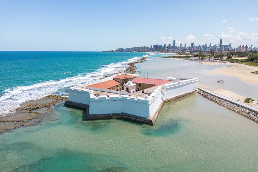 Die Praia do Forte gilt als ruhiger und wenig überlaufener Strand mit natürlichen Badepools, die von Felsen und Steinen geformt wurden. Vorsichtige Schwimmer profitieren von diesen kleinen Schwimmbecken ohne störende Strömung. Doch auch das tiefe Meer ist nicht weit und verführt zu ersten Tauchgängen zwischen Felsen. Zu sehen ist außerdem das Forte dos Reis Magos, welches wir euch bei den Sehenswürdigkeiten näher vorstellen und zugleich Natals Wahrzeichen darstellt.