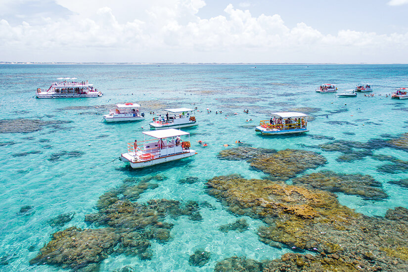 Tauchen und Schnorcheln sind die beliebtesten Wassersportoptionen in Natal. Kein Wunder, denn Orte wie das Maracajaú-Riff („Parrachos de Maracajaú“) eröffnen ganz neue Welten unter Wasser. An Tauchschulen und geführten Ausflügen mangelt es nicht, sodass ihr euch bei den Expeditionen von Anfang an sicher fühlen könnt. Das Parrachos de Maracajaú ist über 15 Quadratkilometer groß, flach und mit reichlich bunten Korallen und Fischen besiedelt. Bei Ebbe wird es zum entspannten Schnorchelziel. Alternative Plätze für den Sport unter der Wasseroberfläche sind die Strände Pirangi und Perobas.