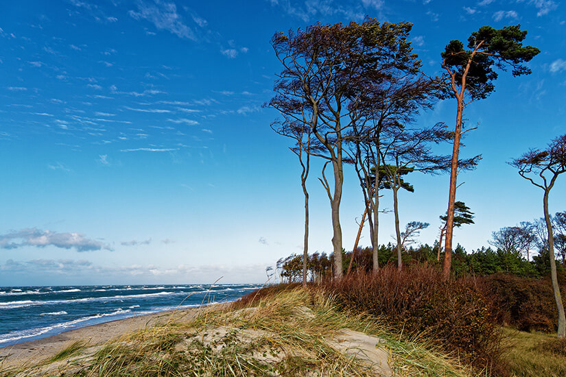 Der letzte der 16 deutschen Nationalparks befindet sich ebenfalls in Mecklenburg-Vorpommern und ist noch größer als Müritz oder Jasmund. Er umschließt 80.500 Hektar an der Bodden- und Ostseeküste, außerdem die Halbinsel Darß-Zingst. Ähnlich wie das Wattenmeer, finden sich hier also vor allem Dünen, Strände und Windwatten, aber auch Wälder, Sandhaken und Kliffs. Es handelt sich somit um den weltweit größten Brackwasserlebensraum, sprich eine Mischung aus Salz- und Süßwasser der ins Meer mündenden Flüsse.