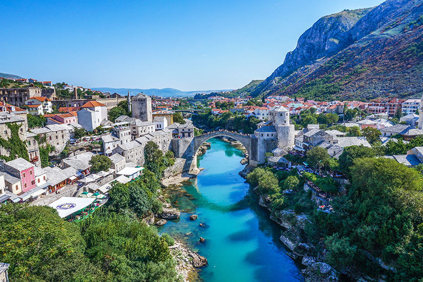 Diese kulturell und von einem Fluss zweigeteilte Stadt liegt etwa 80 Kilometer von Neum entfernt. Die historische Altstadt der sechstgrößten Stadt des Landes ist UNESCO-Weltkulturerbe, erzählt die Geschichte des Bosnienkrieges (1992-1995) und besitzt als Must-see die Brücke Stari Most. Sie überspannt den Fluss und verbindet sowohl geografisch als auch symbolisch das kroatische Westufer mit dem bosniakischen Ostufer. Besucht auf alle Fälle die Karađozbeg Moschee im Osten.