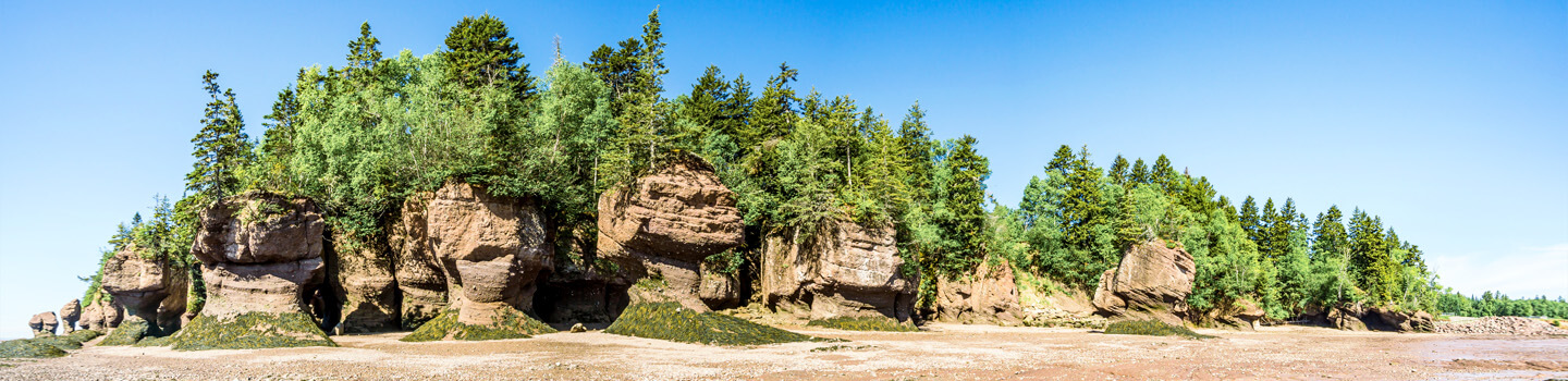 Die Bay of Fundy ist die größte Sehenswürdigkeit in New Brunswick: Eine Meeresbucht, die im Jahr 1604 durch einen französischen Entdecker bekannt gemacht wurde. Sie misst 60 Kilometer in der Breite und 220 Kilometer in der Länge. Der große Tidenhub, von durchschnittlich 13 bis 16 Metern Unterschied zwischen Ebbe und Flut, macht diese Bucht so besonders. Der komplette Durchgang von Ebbe und Flut dauert mehrere Stunden und hat eine einmalige Küstenlandschaft geformt. Zudem verändert die Tide die Fließrichtung des Zuflusses bei Flut. Dieses Phänomen könnt ihr zum Beispiel besonders in Saint John beobachten. Um die Küste zu erkunden, könnt ihr an den Hopewell Rocks herabklettern, euch bei Cape Enrage abseilen oder eine Bootsfahrt unternehmen. Bei Ebbe kann man über den Meeresboden spazieren.