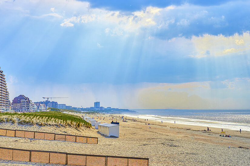 Der Strand von Middelkerke ist der längste von Belgien. Hier findet ihr einen breiten, schönen Strand mit feinem weißen Sand vor. Außerdem brüstet sich der Ort, der mit dem Auto nur 15 Minuten nordwestlich von Nieuwpoort liegt, mit den meisten Sonnenstunden der belgischen Küste. Wer gern Wassersport betreiben möchte, ist in Middelkerke an der richtigen Adresse. Außerdem gibt es mehrere Cafés und Restaurants.