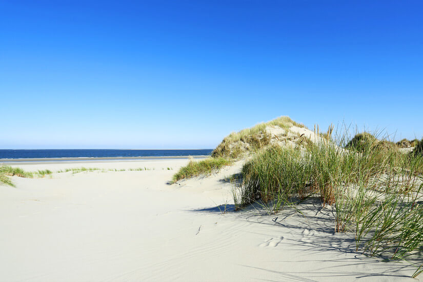 Etwa 17 Kilometer lang erstrecken sich die Juister Strände entlang der Nordsee. Die autofreie Insel punktet vor allem mit ihrem natürlich schönen Szenario. Abgeschiedene und fast menschenleere Abschnitte lassen euch die Ursprünglichkeit des Meeres genießen. Abseits der Ortschaften auf der Insel finden sich kaum Einkehrmöglichkeiten, so dass die Ruhe spürbar ist.