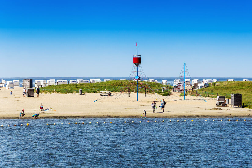 Dieser Nordseestrand befindet sich in Niedersachsen in einem Heilbad. Der feine und abgeflachte Sand schmeichelt nicht nur bei einem Spaziergang euren Füßen. Strandkörbe, Imbissbuden und Cafés sorgen für Kurzweil unabhängig vom Schwimmtag. Zudem herrscht allgemein eher ein ruhiges Flair; natürlich abgesehen von dem großen Spielplatz, bei dem sich die Jüngsten austoben dürfen. Für die malerische Szenerie in Bensersiel wird ein kleines Eintrittsgeld fällig, das sich aber lohnt. Bensersiel ist ein perfekter Strand an der Nordsee für den gelungenen Urlaub mit dem Nachwuchs! Das liegt einerseits an dem seichten Strand und andererseits an den vielen weiteren Möglichkeiten zur Unterhaltung, zum Beispiel in Form des Spielplatzes.
