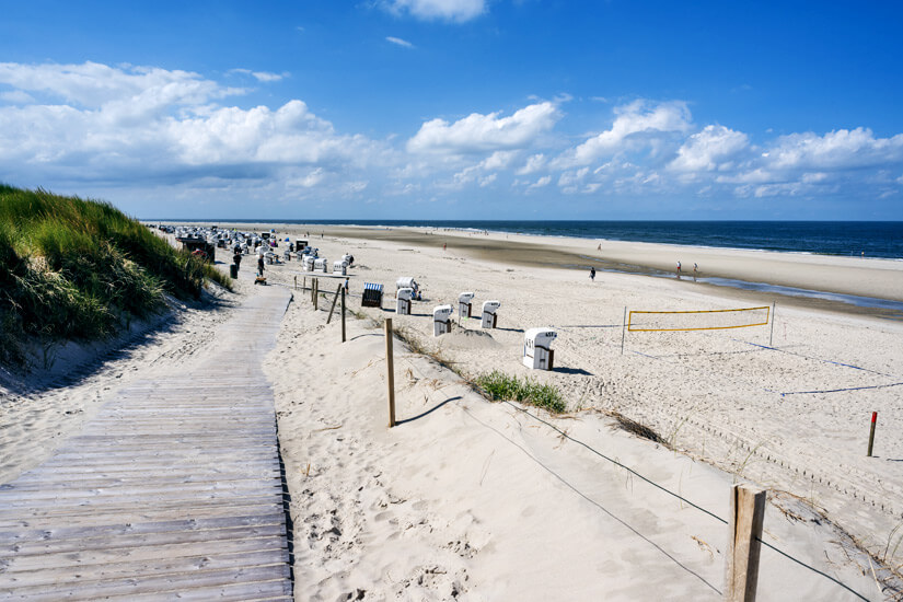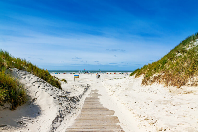 Auf der Insel Sylt findet sich ein weiterer, schöner Strand – wenn auch diesmal keiner für den Badeurlaub. Er liegt an dem berühmten Lister Ellenbogen und gilt als eines der beliebtesten Fotomotive der gesamten Insel. Er befindet sich in einem malerischen Naturschutzgebiet und lädt zu Spaziergängen durch den feinen Sand sowie zu Wassersport ein. Durch die starken Strömungen, die am Lister Ellenbogen herrschen, müsst ihr zu eurer Sicherheit aufs Schwimmen verzichten.