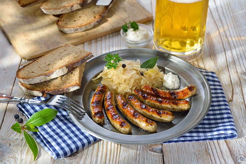 Wer es etwas deftiger mag, greift zu einer Nürnberger Rostbratwurst, die ihr sowohl an allen bekannten Sehenswürdigkeiten, aber auch in urigem Ambiente im Restaurant bestellen könnt. Dazu passt ein fränkisches Bier, mit dem ihr auf einen gelungenen Urlaub anstoßen könnt.