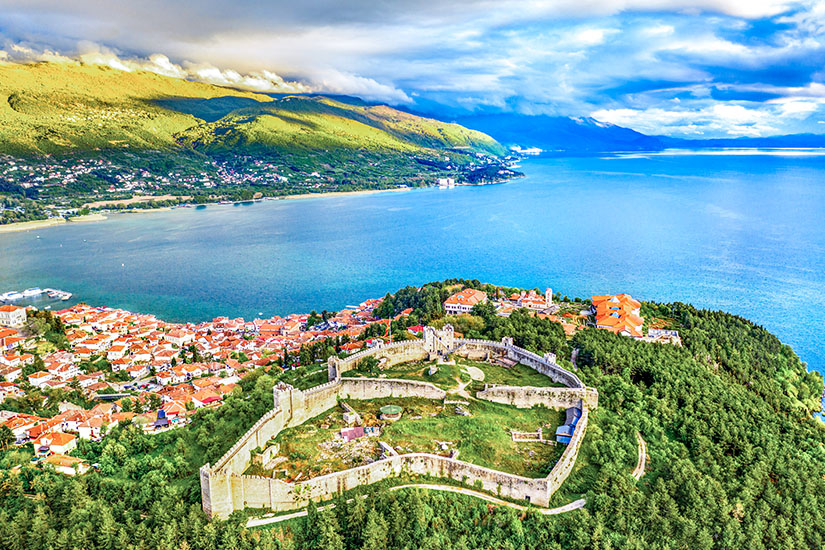 Auf nordmazedonischer Seite ist die Stadt Ohrid die eindeutig wichtigste und sehenswerteste Ortschaft. Das liegt unter anderem an der beeindruckenden Festungsanlage, die über der Stadt thront. Diese wurde vor rund 1.000 Jahren vom damaligen bulgarischen Zaren erbaut und ist noch heute gut erhalten und kann besichtigt werden.